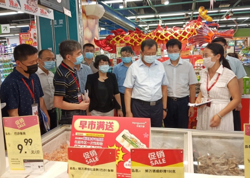 6月21日,广西壮族自治区人民政府副主席李彬到华润万家南宁青秀店检查疫情防控工作,自治区人民政府副秘书长李盛、市场监管局党组书记何朝建、市场监管局副局长李勇强、商务厅及南宁市政府主要领导陪同检查。