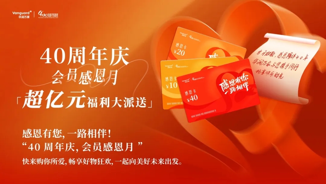 12月6日-12月30日,华润万家为消费者开启了一场年末购物狂欢——“40周年庆,会员感恩月” 活动,以超亿元的福利回馈广大消费者的长期支持与厚爱。今年是华润万家40周年暨Olé精品超市20周年。活动期间,华润万家以会员满额送无门槛感恩卡的方式,到店满额送40元、20元、10元感恩卡,表达对顾客的诚挚谢意。