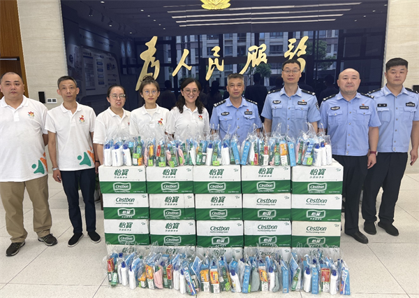 中午12点,志愿者一行来到娄门派出所,为警务人员送上瓶装水和清凉礼包。派出所教导员蔡文明介绍,派出所90多名警务人员一直奋战在辖区维持社会治安、安保的一线,工作十分繁忙。