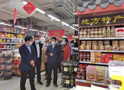 视察结束时,市委书记周德睿及市长邹文辉对门店在抗疫保供、民生物资储备及安全保障方面予以肯定,并向门店工作在一线的员工带来了春节的问候。