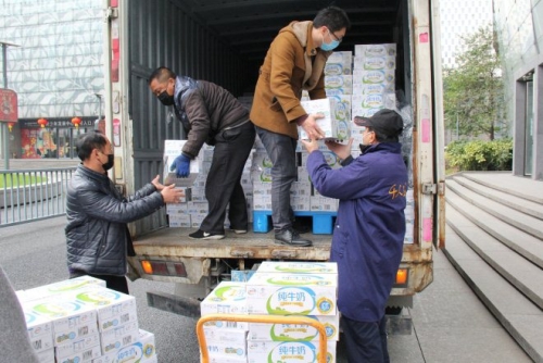 为助力疫情抗击,3月2日,华润万家浙江公司携手伊利向杭州市抗疫一线医疗机构捐赠1500箱牛奶,为防疫一线的医护人员送去关怀。