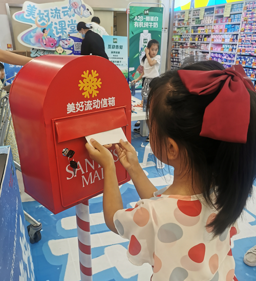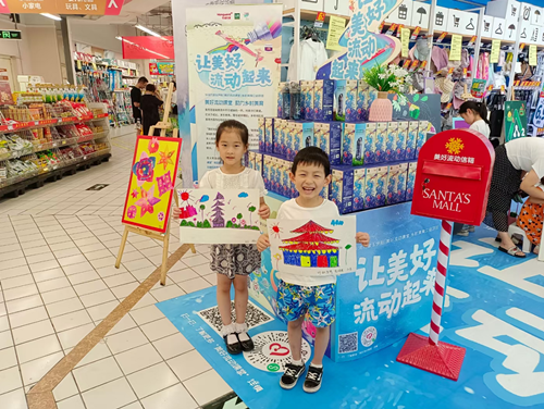 据悉,6月12日至6月20日期间的周末,华润万家携手伊利,在西安、天津、上海、深圳、广州、珠海、南京、南昌等8个城市的指定万家门店同时开展义卖活动,义卖所得善款将全部投入到乡村学校美育条件的改善,用于美育物资采购、乡村教师培训、美术课程开发、美术角建设等。记者在华润万家三桥新街店内看到,万家志愿者们不断地为来往的顾客介绍此次活动,同时指导现场的小朋友一起为乡村小朋友们“画”一封信,让城市孩子将对乡村的美好想象,化作绘画传向乡村孩子通过画作为乡村送去美好祝愿,让城市的美好流向乡村。